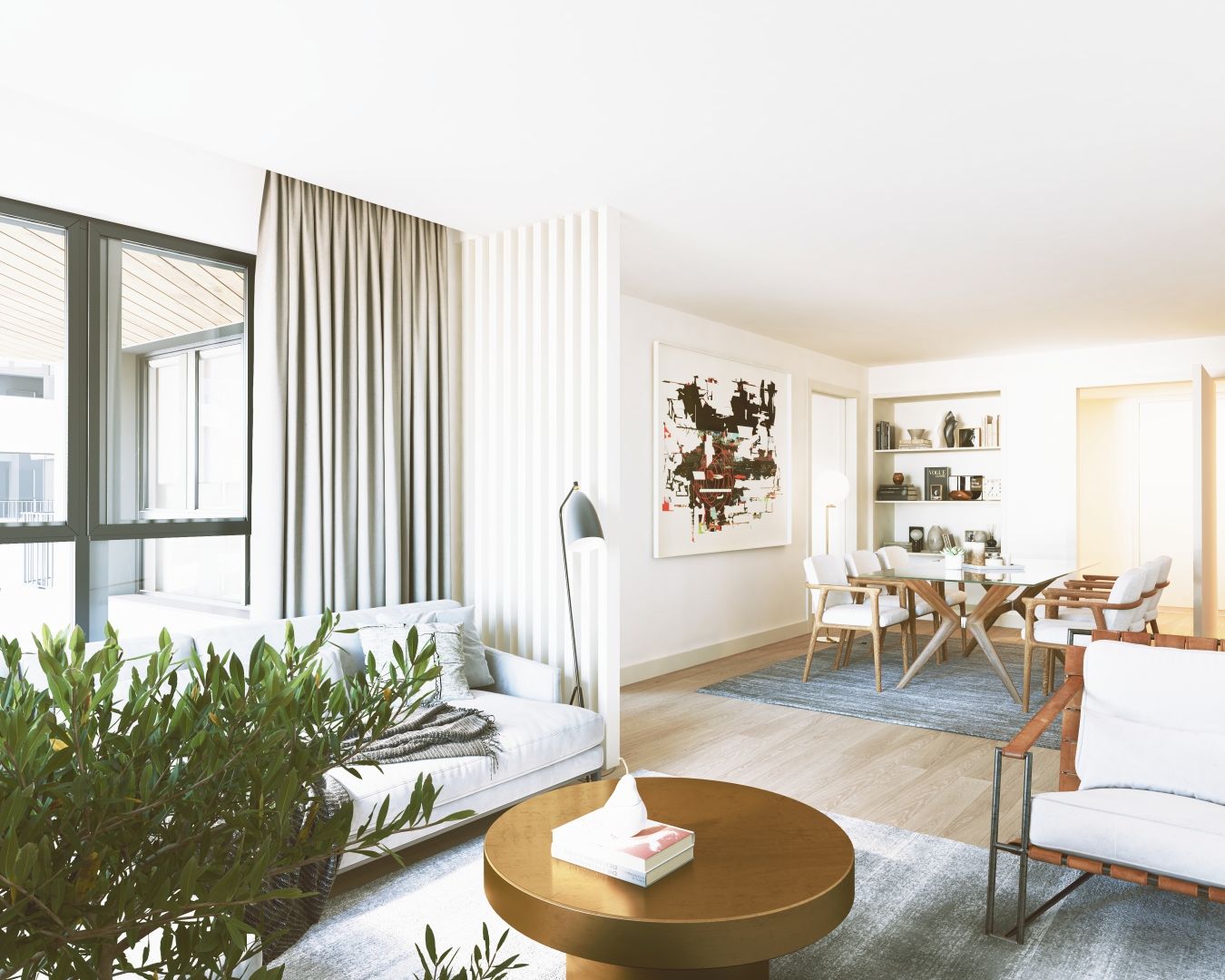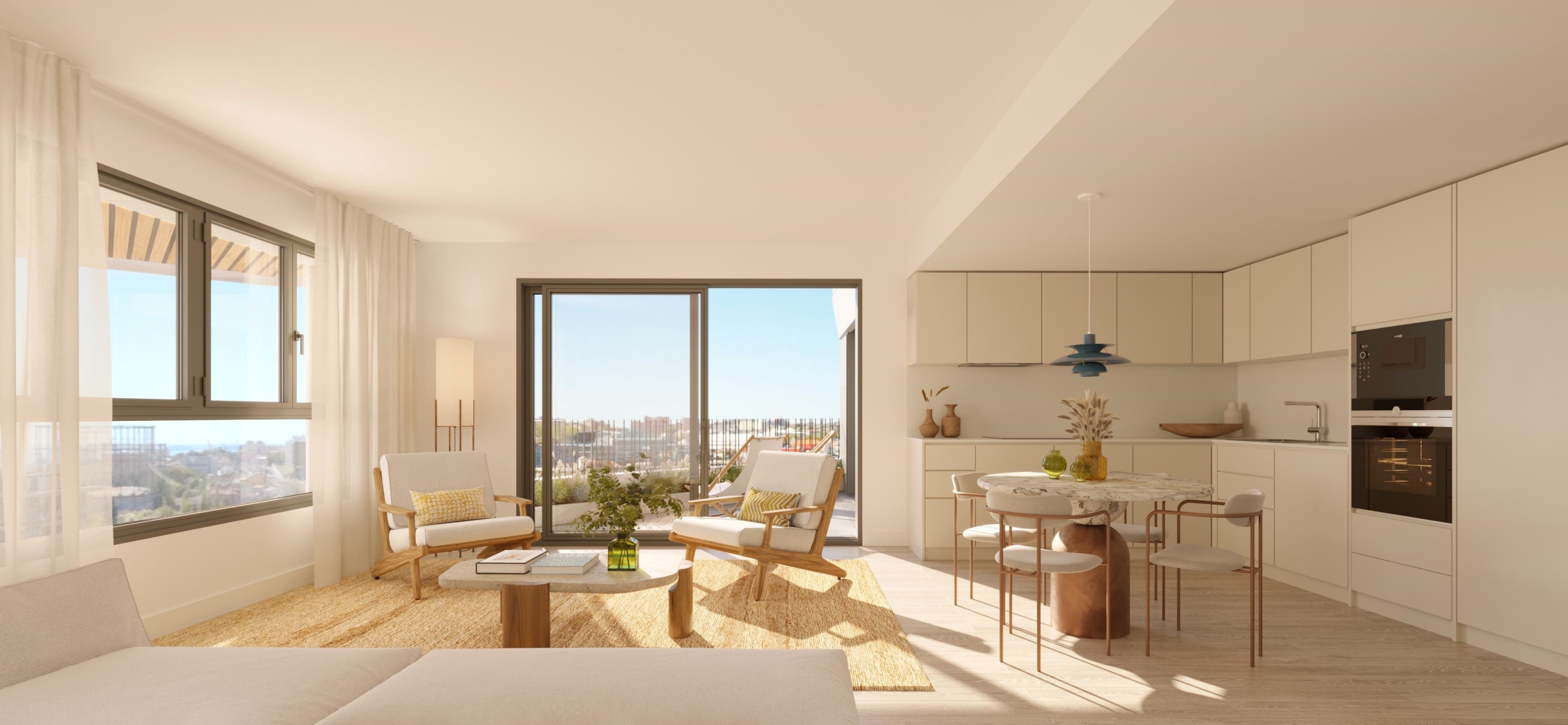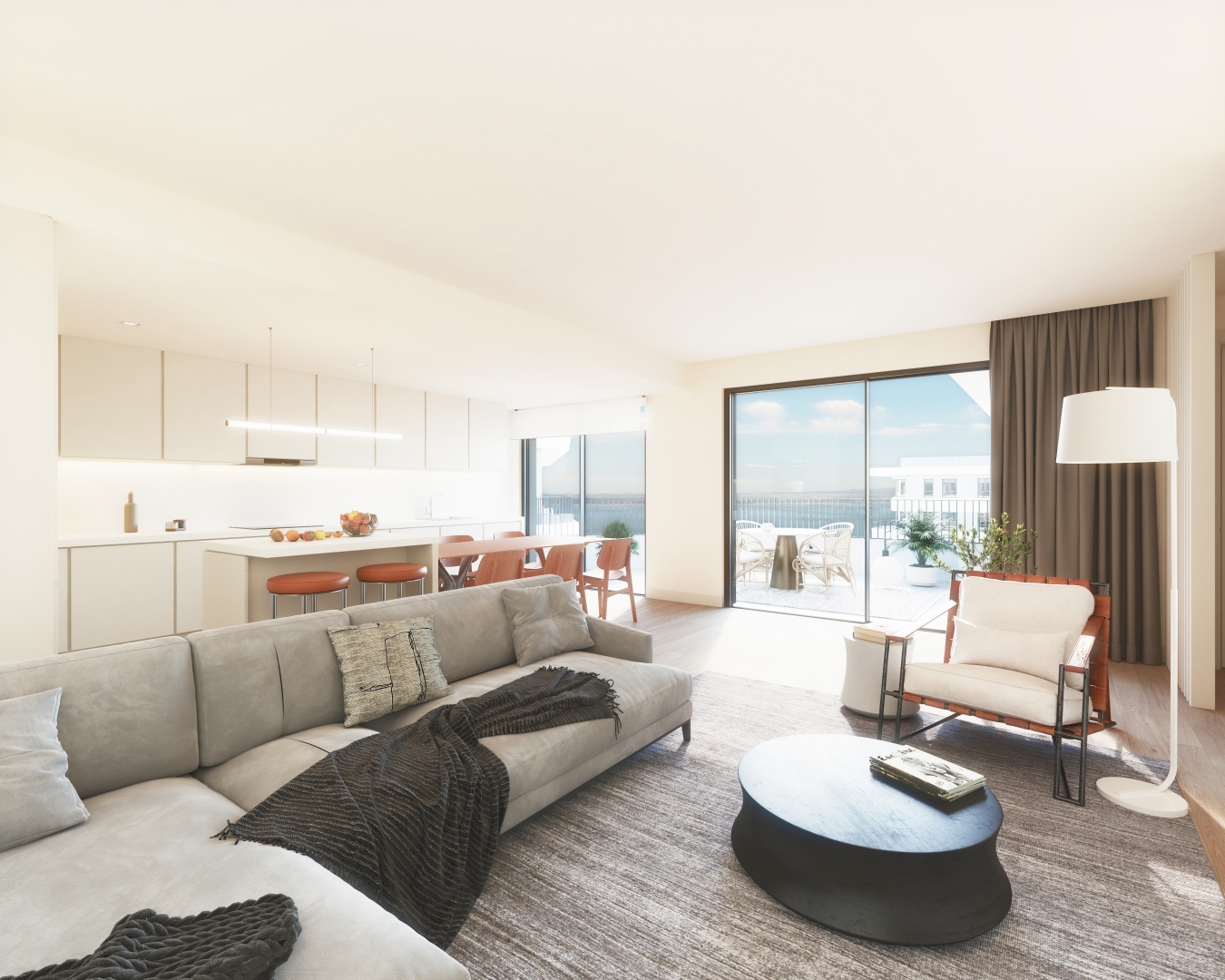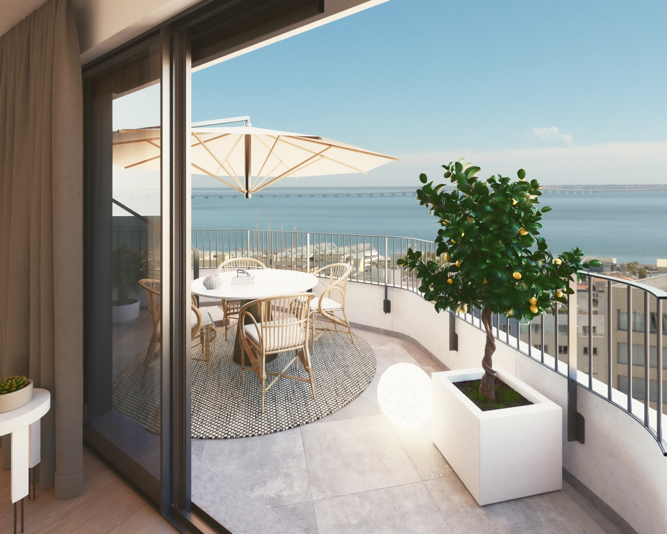 These spacious homes stand out for their expansive balconies, creating a seamless connection between indoor and outdoor living, where natural light floods the interiors, and breathtaking views of the Tagus River provide a serene backdrop. The design is not just aesthetic—it is functional, sustainable, and future-oriented, ensuring a home in perfect harmony with both nature and the city.