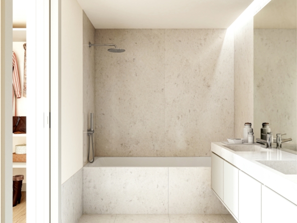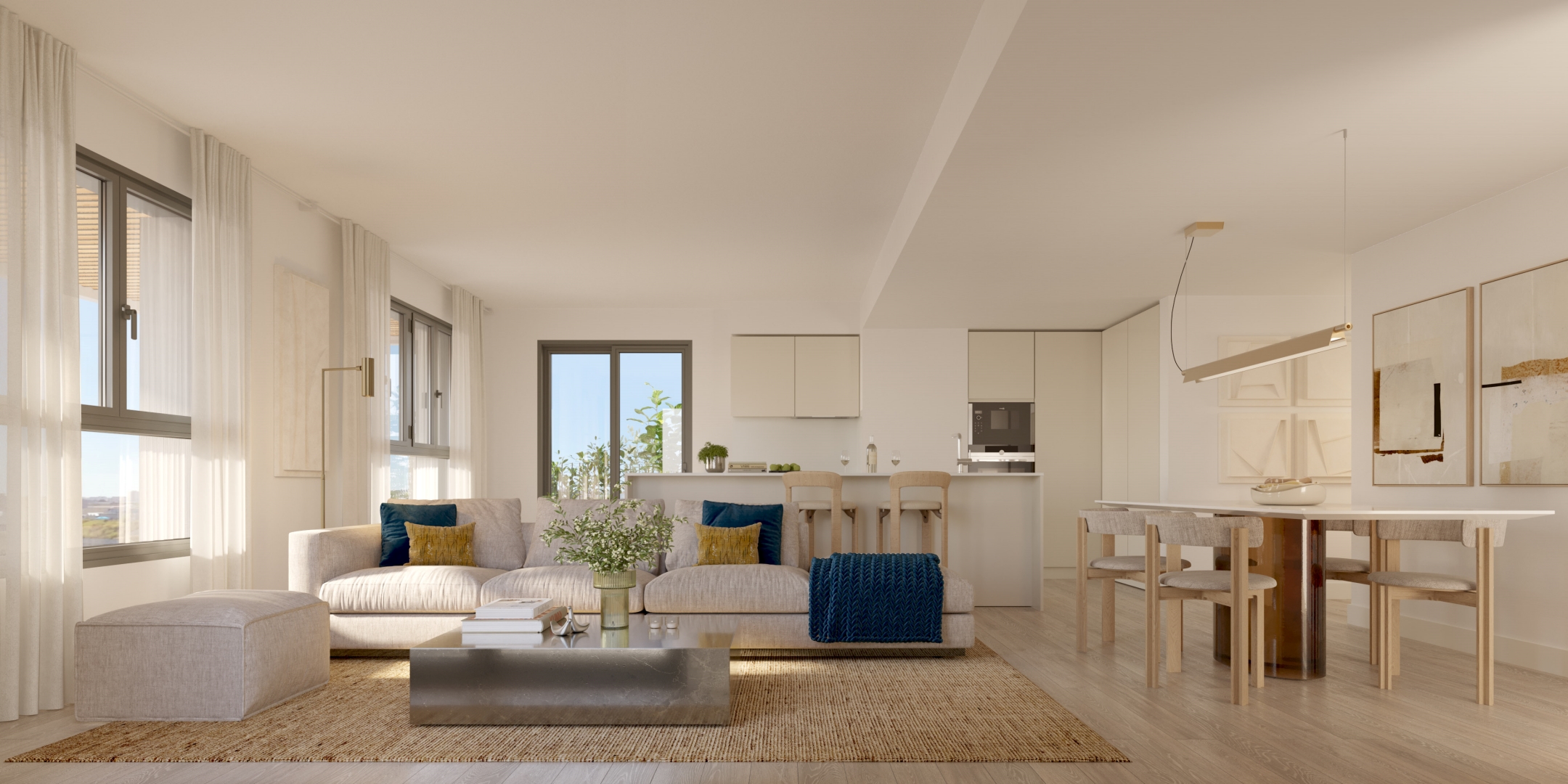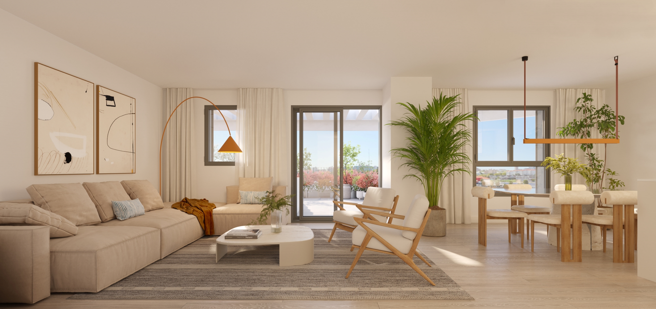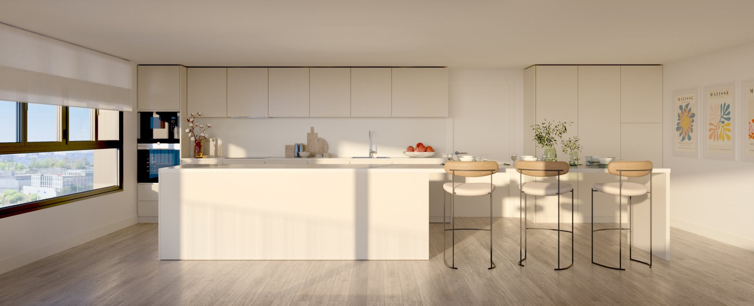 These spacious homes stand out for their expansive balconies, creating a seamless connection between indoor and outdoor living, where natural light floods the interiors, and breathtaking views of the Tagus River provide a serene backdrop. The design is not just aesthetic—it is functional, sustainable, and future-oriented, ensuring a home in perfect harmony with both nature and the city.