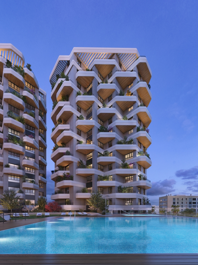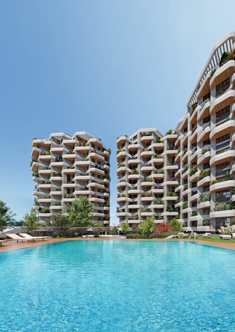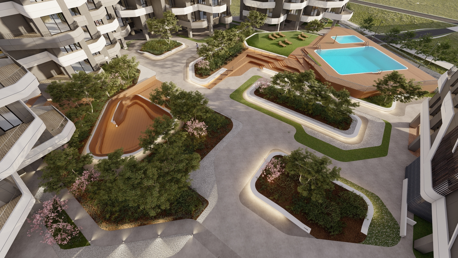 Comprised of four 13-story buildings, the development offers a total of 214 apartments, ranging from one- to four-bedroom units, designed for those seeking a space that combines modernity, comfort, and sustainability.