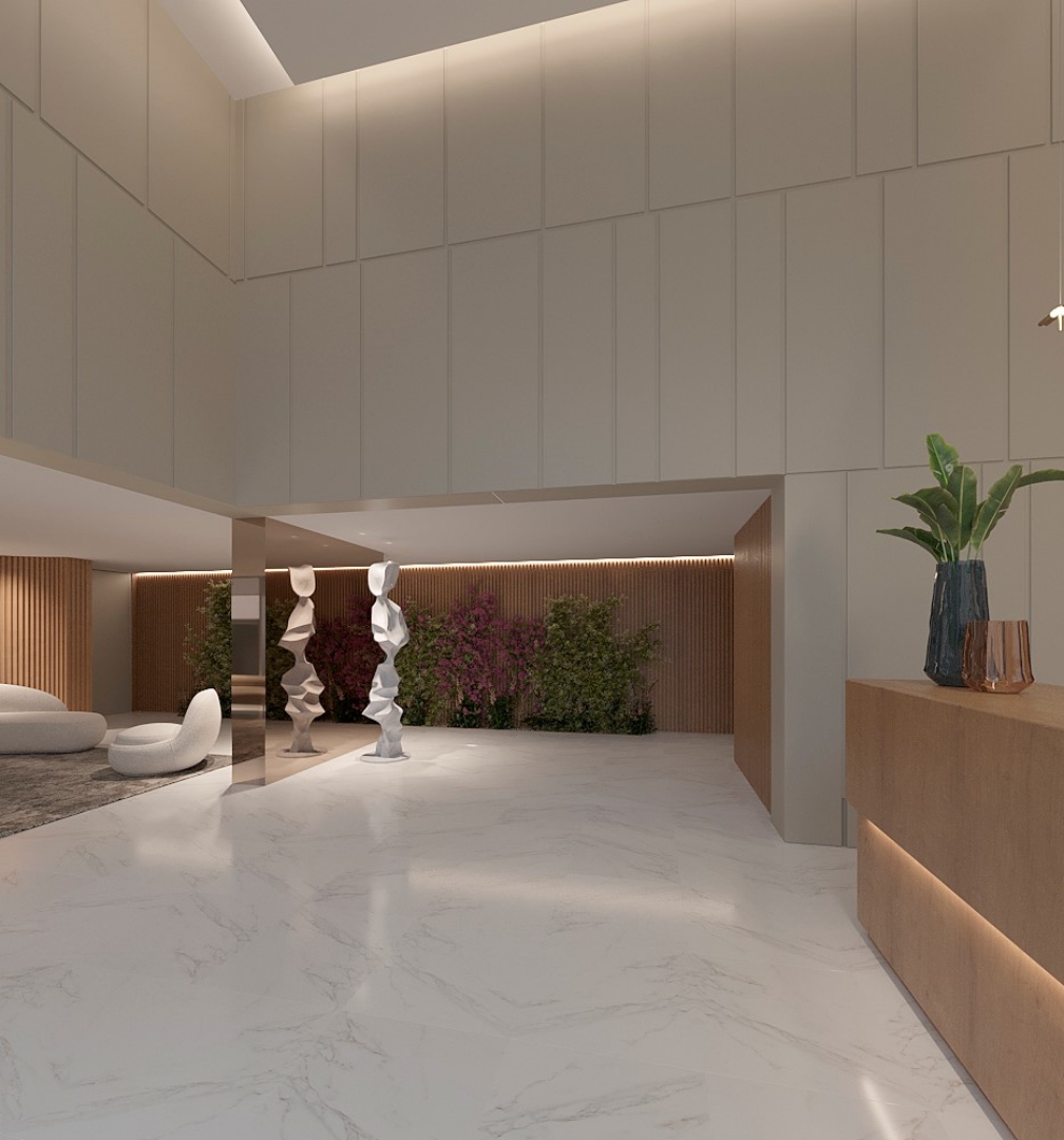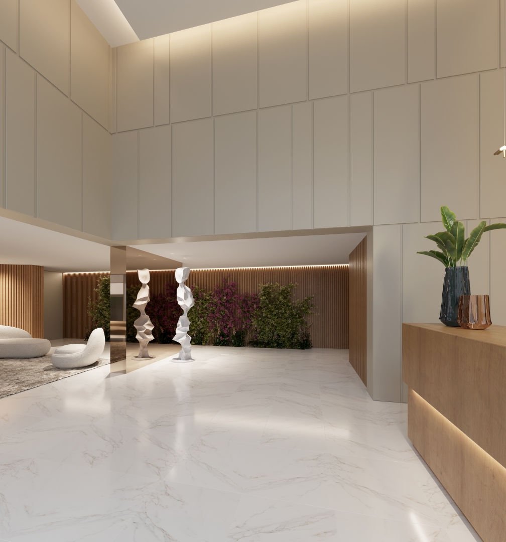 It offers a range of luxurious amenities that make daily life easier and more enjoyable for its residents. These include a double-height lobby, a gym with ocean views, and private parking equipped with electric charging stations for vehicles. Additionally, a license plate recognition system for gate access ensures added convenience for residents.